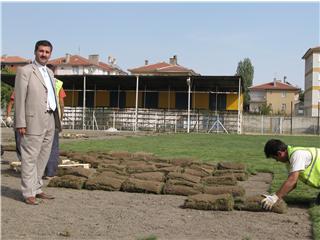 Çimlemeye başlanılan stadı yerinde inceleyen Başkan Tuğluca yetkililerden bilgi aldı. Yetkililerden uzun uzun bilgi alan Başkan Tuğluca gördüğü eksikliklerinde derhal giderilmesi için talimatlar verdi.
