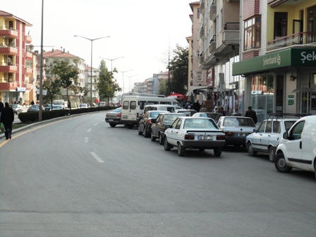 Ankara Bulvarı ve Çarşı İçi’nde trafik ekipleri tek sıralı parka müsaade etmezken araç sahiplerine söz geçiremedi ve uygulamayı bıraktı. Şimdilerde buralarda 2’li park bile serbest. Araçlar ve yayalar buralarda neredeyse kol kola yürüyorlar. Vatandaşlar yaya kaldırımını kullanmıyorlar. Bu kaldırımların geneli de işyerleri tarafından işgal edilmiş durumda. İnsanlar bir ekmek, bir gazete ve bir