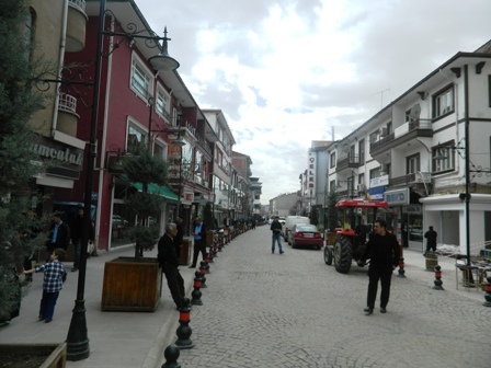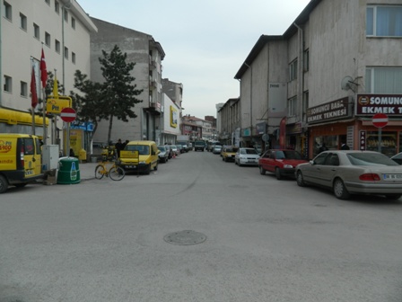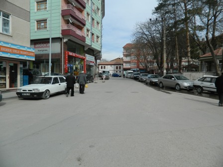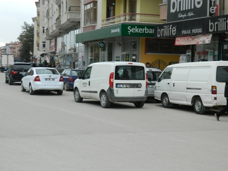 Yine Çarşı İçi’nde yol iki şeritli araçlar sağlı-sollu işyerlerinin önlerine park ediliyor. Trafik ortadan işliyor. Keza Adnan Menderes Bulvarı da öyle..