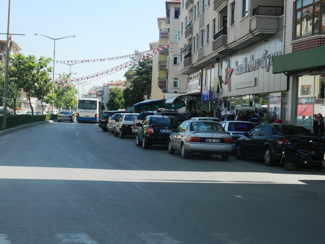 Atatürk Caddesi’nin Ankara Bulvarı istikametinde ise “Sınırlı ve Süreli Park Levhası” yok. Oysa Çarşı İçi gibi burası da Devlet Yolu.. Burada Başgimpa ve Harikalar Diyarı ve yeni açılan Yunus Market var. Araçlar bu marketlerin önünde yol istikametinde değil, genel olarak inadına yapar gibi çapraz olarak park ediyorlar, üstelikte 2 araçlık yer kaplıyorlar. Trafik burada tek şeritten işliyor.
