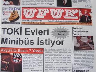 Akyurt ilçesinde haftalık olarak yayın yapan, ilçenin tek yerel gazetesi olan UFUK Gazetesine, Akyurt Belediyesi tarafından haciz konuldu. Belediye İş hanında, belediyeye ait büroda yayın hayatını sürdüren Ufuk Gazetesi ilçede yaklaşık 8 yıldır ilçenin sesini duyurmaya çalışıyor. Akyurt Belediyesine yaklaşık 5.250 YTL kira borcunu ödeyemediği için, belediye avukatı tarafından Ufuk Gazetesinin bilgisayarlarına, büro eşyalarına ve Ford Taunus marka otomobilline haciz konuldu.