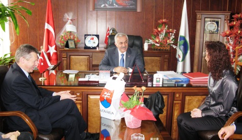 Avrupa Birliğinden sağlanan fonlar hakkında da kısa bilgi alan Başkan Özden, Büyükelçi Jakapcın'e ziyaretleri anısına plaket ve Osmanlı Turasının işlendiği bir tablo hediye etti. Büyükelçi Jakabcın'da Başkan Özden'e tamamen el yapımı işlemeli kristal vazo ile Slovakya"yı anlatan bir kitap hediye etti.