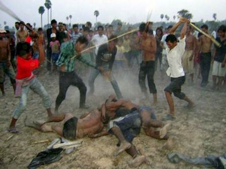 Başkent Phnom Penh’de, iki kızkardeşin çantalarını alan üç kapkaççıyı polis yakaladı. Ancak bir anda toplanan 400 kişilik grup kapkaççıları polisten aldı. Öfkeli kalabalığın taş, demir ve tahta sopalarla feci şekilde dövdüğü kapkaççılardan ikisi öldü, diğeri yaralandı.