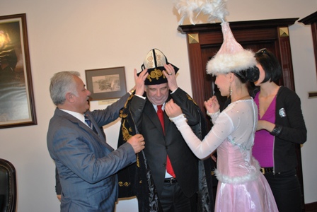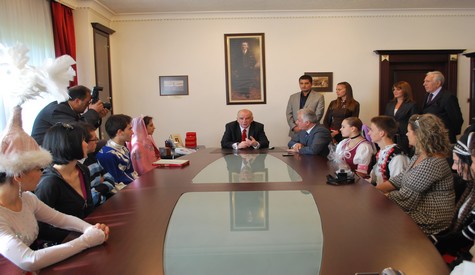 Kazak, Slovak, Gürcü ve İranlı konukların birer şarkı seslendirdiği kabulde, konuklar ülkelerinden getirdikleri hediyeleri Vali Önal'a sundu. Daha sonra Önal, konuklarla hatıra fotoğrafı çektirdi.