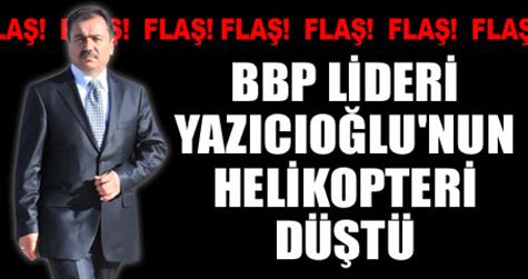 BBP lideri Muhsin Yazıcıoğlu'nu Maraş'dan Yozgat'a götüren helikopter bir köyün yakınlarında düştü. Kazada yaralanan Yazıcıoğlu'nun sağlık durumu hakkında henüz ayrıntılı bilgi yok.